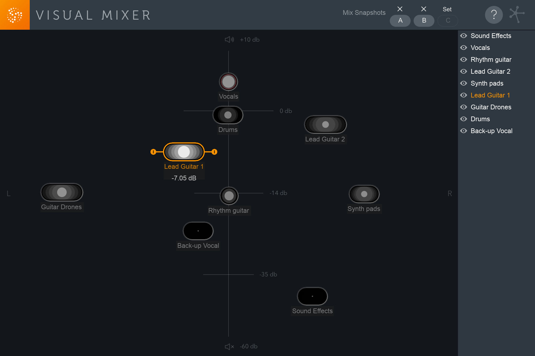 Visual mixer lets you move your tracks around a virtual space.